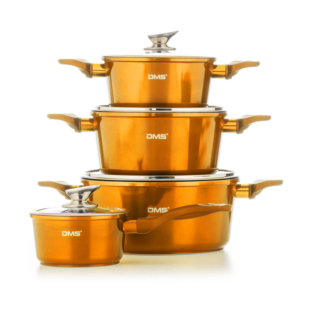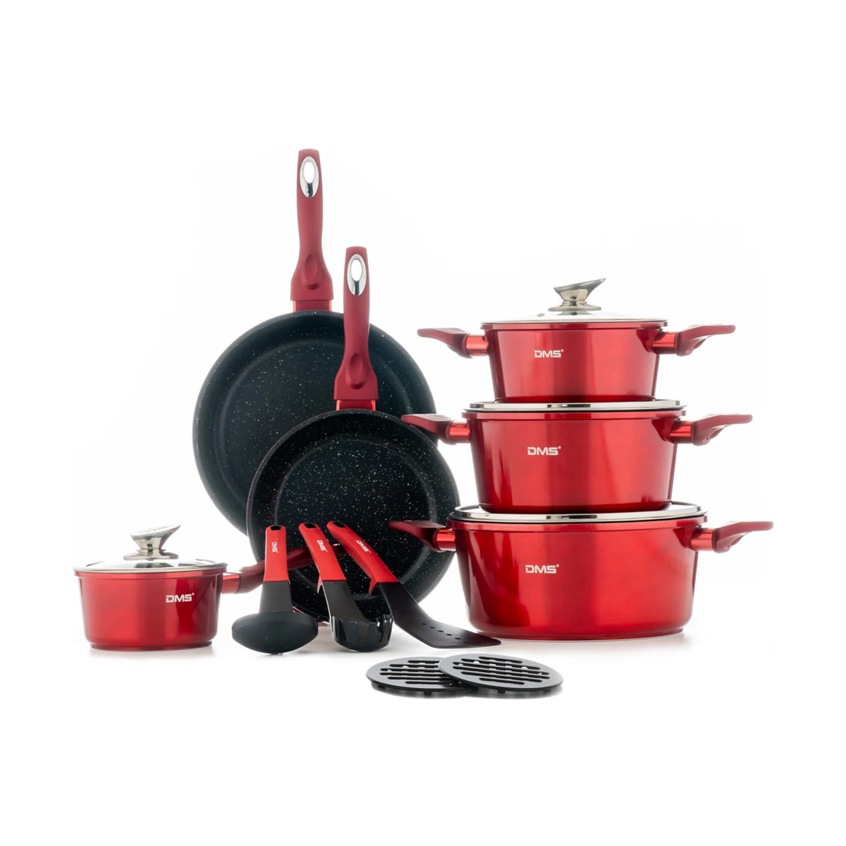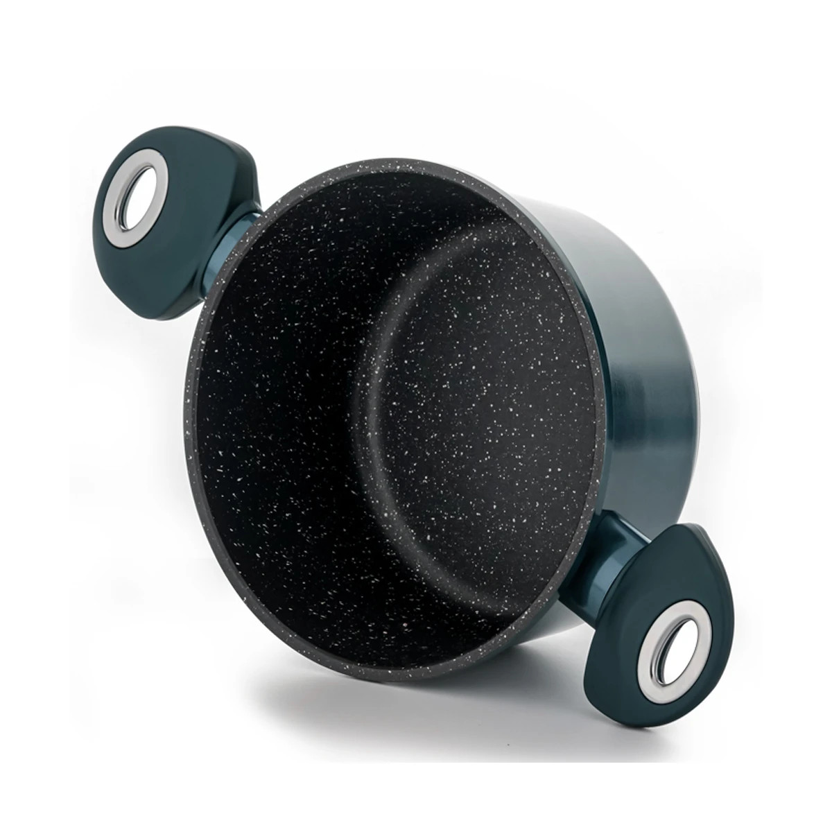 Setul de vase de gătit este deosebit de durabil datorită aluminiului de înaltă calitate și stratului de marmură al tigăii.